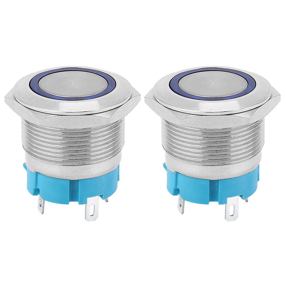 Ouitble Self Locking Switch Metal Self Locking Push Button Switch 22mm IP65 with Ring Light, Blue 3-6VDC, 2PCS for Ship Car Modification