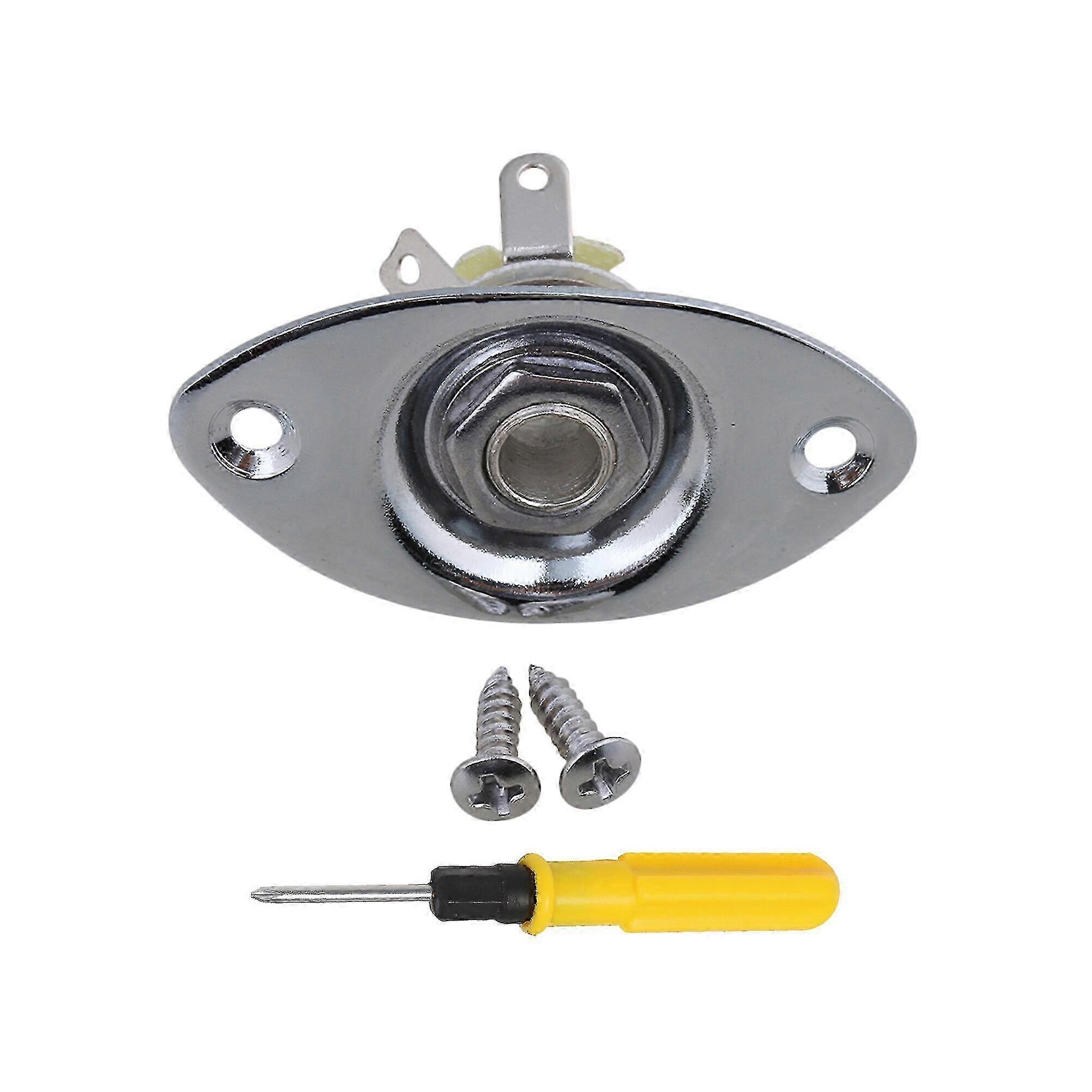 Oval Guitar Output Plate Jackplate Socket 37mm w/ Screwdriver Set Chrome