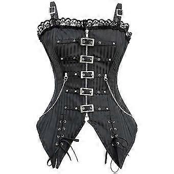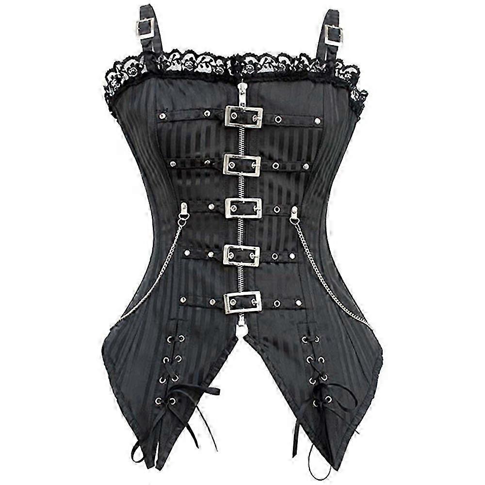 Overbust Corset Women Sexy Gothic Corselet Striped Zip Buckled Steampunk Bustier Top Vest Punk Rock Style Clothes