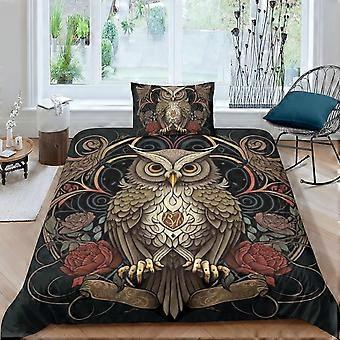 Owl 3D Pattern Pillowcase Sets, with Pillowcase and Microfiber Zippered Duvet Bedding Set)