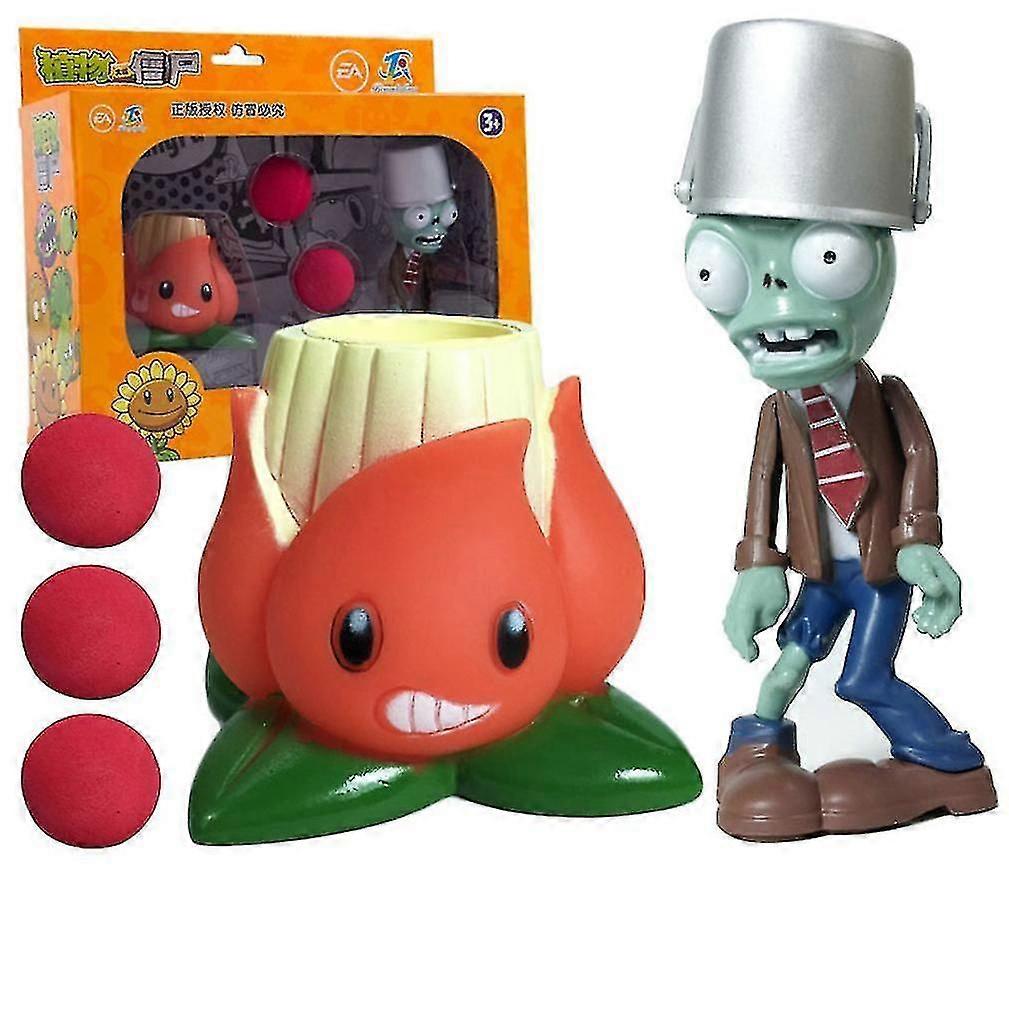 Plants Vs Zombies Peashooter Figure Toys Flexible Glue Can Launch Set