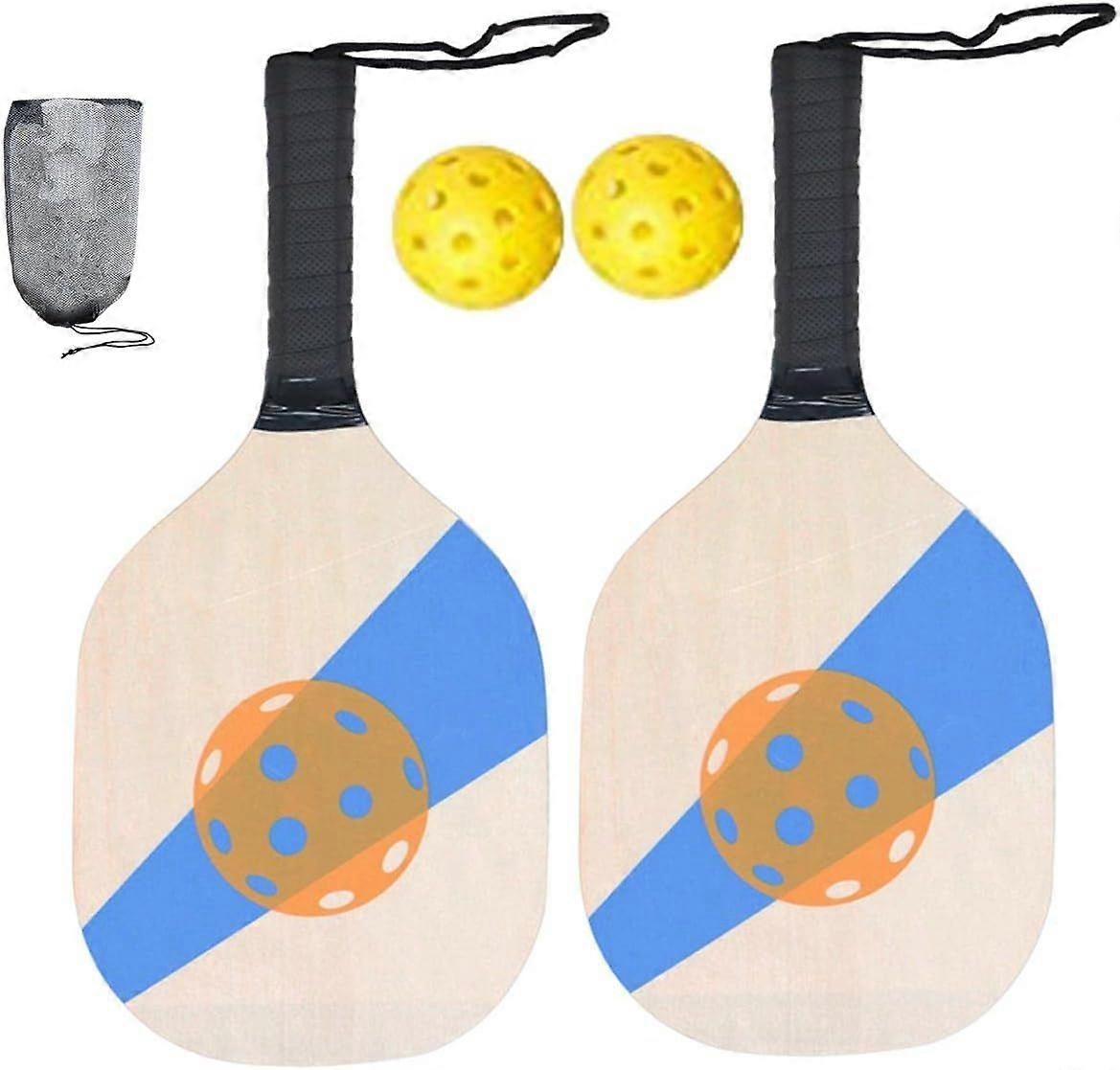 Pickleball Wood Paddle Set with Bag Beginner Racket Durable 40cm Long 19cm Wide for Men Women Kids 2 Paddles 2 Pickle Balls Portable