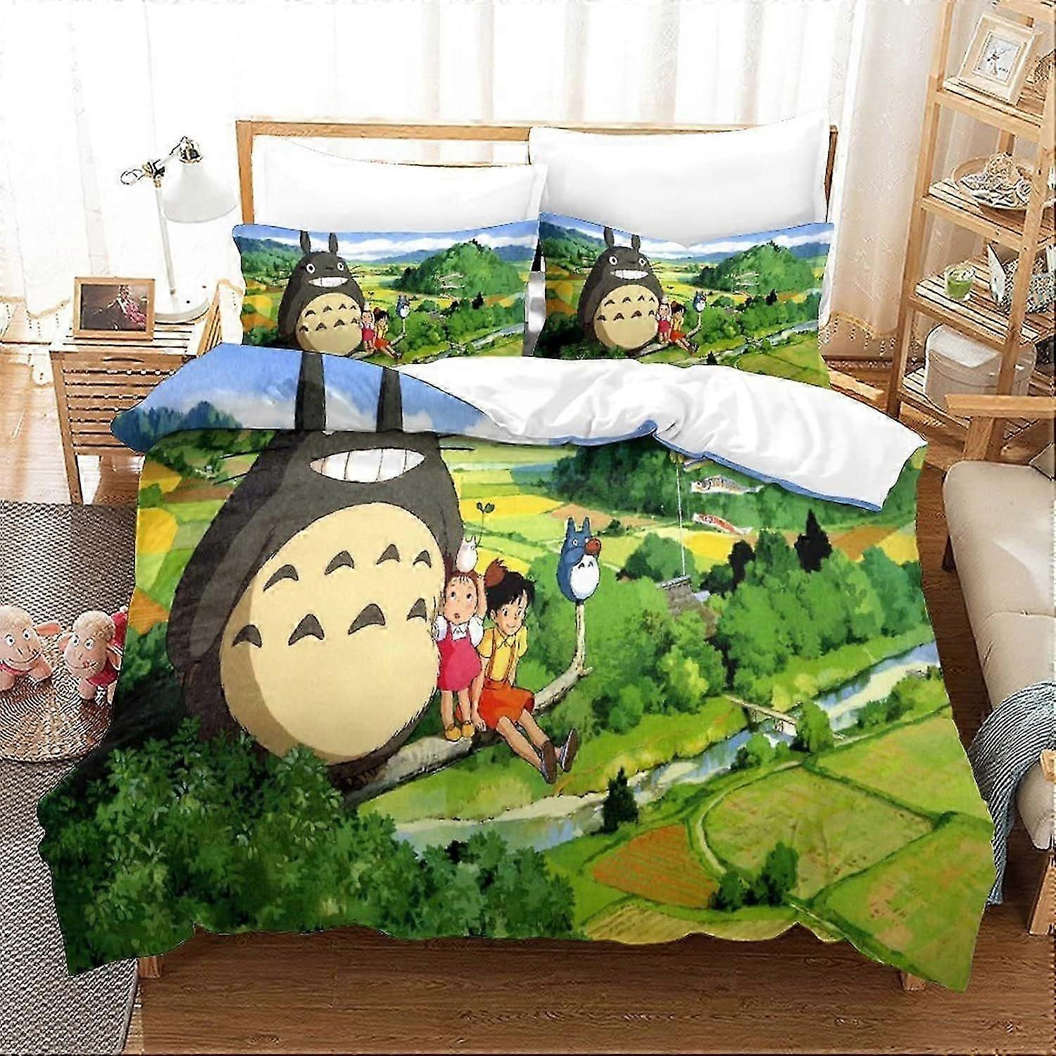 PIN797 Studio Ghibli Anime Poster Microfiber Quilt Cover Set Single Bedding Quilt Cover 3D Printed with Zip, Closed, with A Pillowcase King220x240cm