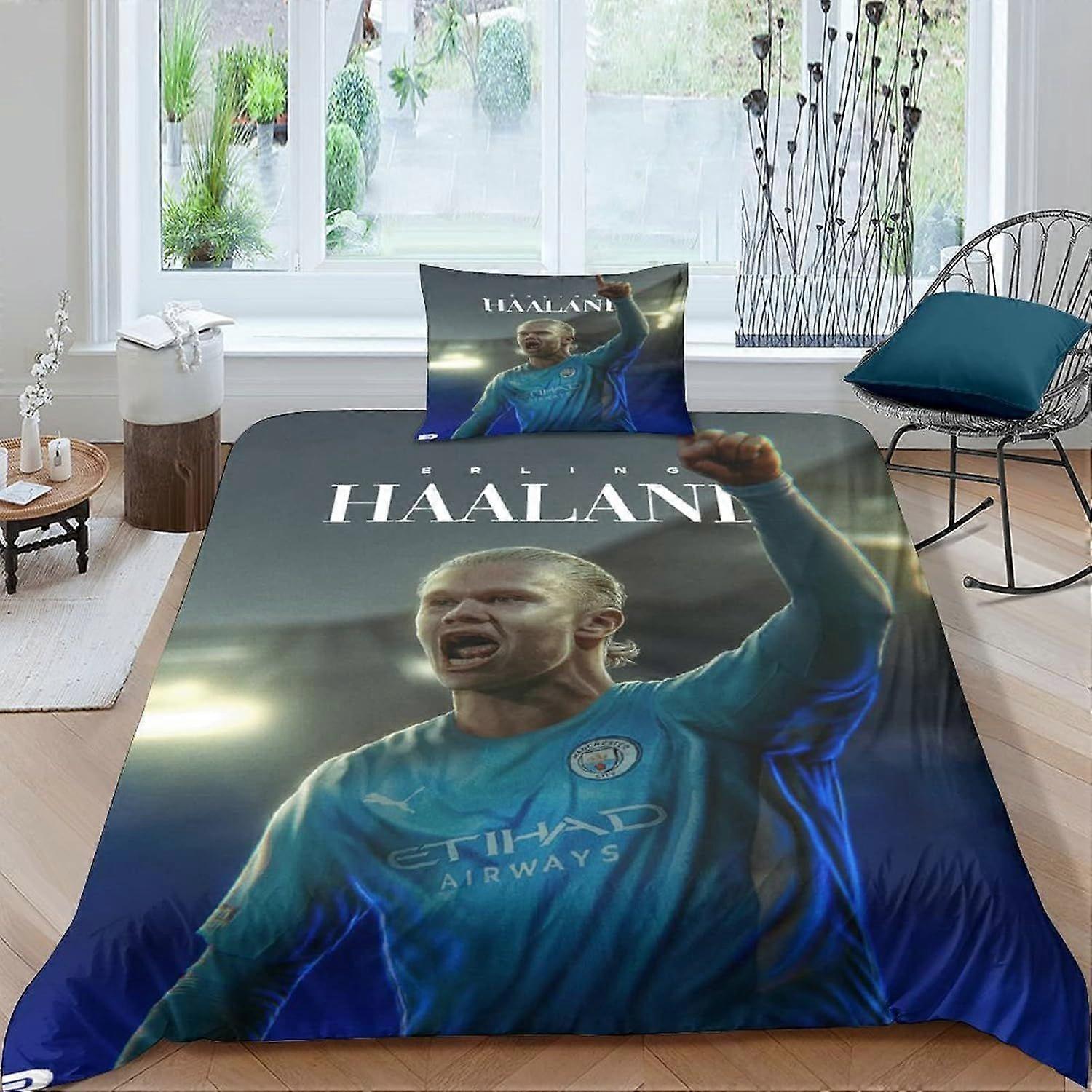 PIN966 Erling Haaland 3D Printed Duvet Cover Sets for Kids, Teens And Adults Football Star 2 Piece Set Hypoallergenic Microfiber Quilt Covers with Pil