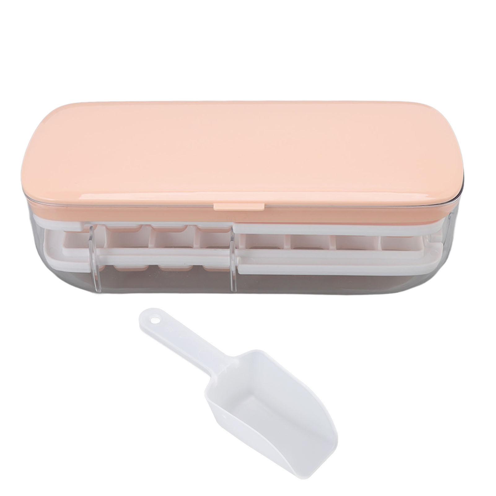 Pink 2-Layer 48-Grid Ice Cube Tray with Lid – ABS, PP, PET & Silicone for Home Use