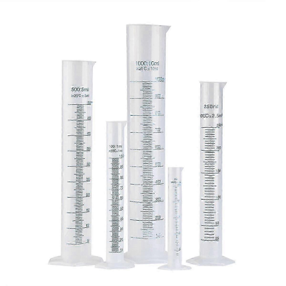 PIXNOR 5pcs Transparent Measuring Plastic Graduated Cylinder 50ml / 100ml / 250ml / 500ml / 1000ml