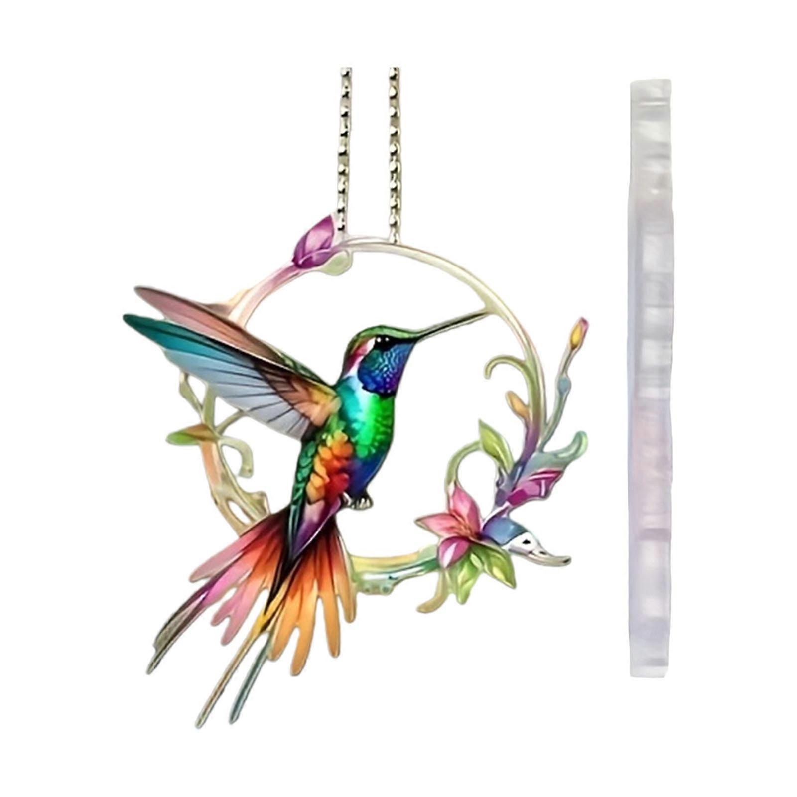 Playful Bird Shape Car Accessory Shatterproof Acrylic Pendant with Removable Elastic Hanging Cord for Auto Rearview Multicolor