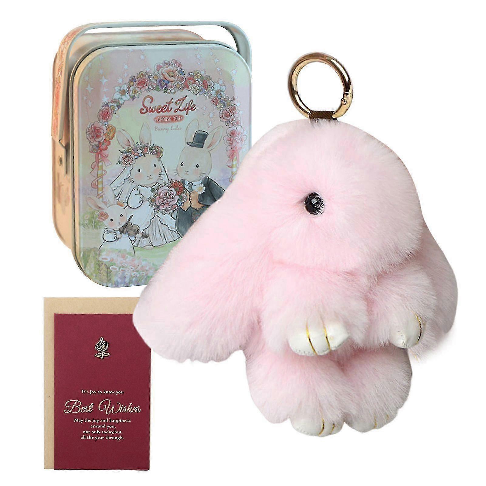 plush rabbits doll pendant set with mini tin box