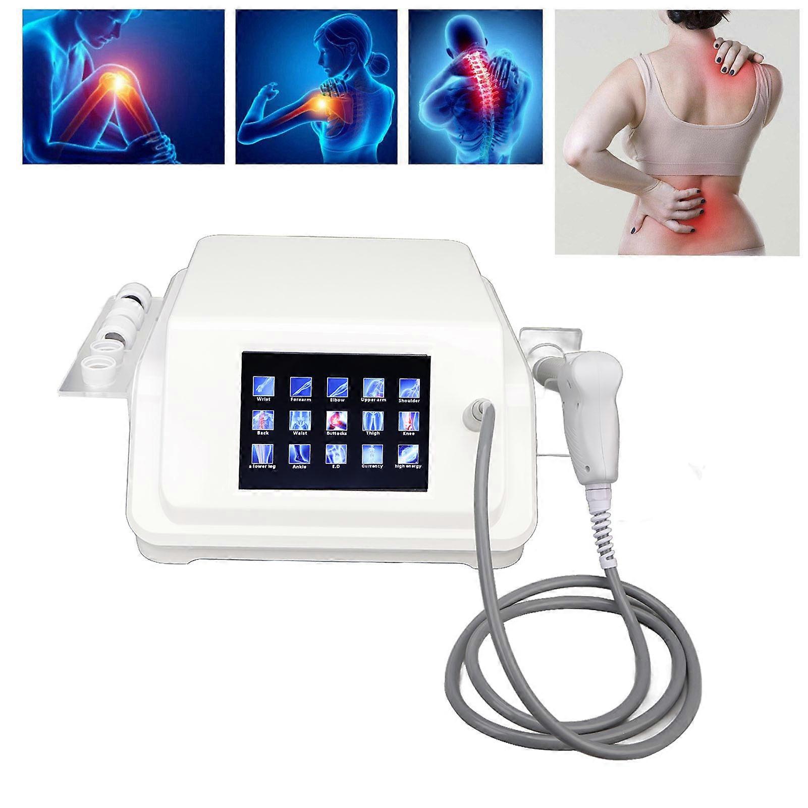 Pneumatic Shockwave Treatment Machine Deep Massage Reduce Tissue Tension Extracorporeal Treatment Device UK Plug 220V Item Type: Pneumatic Shockwave Machine Material: ABS Frequency Gears: 22 Power Gears: 24 Treatment Range: 1. Soft tissue pain: strength 2-4bar, frequency 8-15HZ, number of shocks 2000-3000 times, 4-5 times for one course of treatment, interval of 3-5 days between two adjacent treatments;  2. Family disease: In principle, it is appropriate to take many times, the strength is 2-5bar, the frequency is 5-10HZ, the number of impact is 2500-3500 times, 4-5 times for a course of treatment, (3-10 times, such as femoral head necrosis for a course of treatment). The interval between two adjacent treatments is 3 to 5 days. 3. Some patients may experience slight pain during treatment. Talk to a therapist to adjust the impact energy. It is normal for you to feel mild discomfort at treatment site within a few days of treatment. At the beginning of the course, minimize the exertion of the movement or local injury, and take care to rest for 1-2 weeks during this period to allow the treated site to heal completely. Working Principle: Pneumatic shockwave machine use the principle of soundwaves, massage the effect to the fascia layer, can peel fascia and muscle, fundamentally eliminate a series of problems caused by muscle strain. For people with chronic muscle strain, the initial sensation of a lattice shockwave is pain and "shaking," Because the muscles have been squeezed for a long time and are attached to the fascia, the position of the muscles and fascia has been distorted. To remove the attached muscles and fascia, it is necessary e the force that can penetrate into the fascia layer to pull them apart and make them return to the correct and natural position. Therefore, the use of shockwave massage "the sound effect goes straight to the fascia layer, and the user will feel pain" and "shock". Indications of pneumatic extracorporeal shockwave: Soft group only pain problems: shoulder periarthritis, Achilles tendinitis, cervical spondylosis, plantar fasciitis, low back pain, tennis elbow. Orthopedic diseases: bone adhesion, pseudojoint, femur necrosis in the early and middle stages. Other diseases: muscle spasm, burn plastic surgery, ED physiotherapy, wound healing. Shockwave has the following effects: 1. Cells: enhance the permeability of cell membranes by improving ion channel activity, promoting cell division, and enhance the permeability of cell membrane. 2. Blood vessels in tendons and muscles: improve circulation, increase growth factor B1, and enhance mitosis of osteoblasts. 3. Nitrogen oxide system: accelerate bone remodeling and healing. 4. Improve microcirculation and metabolism 5. Promote the dissolution of calcified fibroblasts. 6. Promote the synthesis of collagen. 7. Reduce tissue tension. 8. Analgesic effect. How e: 3. Interface Setting: (1)Click on "Setup" to select language. (2)Click on treatment parts icon on the screen which you want to operated on, the system will enter the operation interface automatically. 4. This system include 15 operation parts: Wrist, Forearm, Elbow, Upper arm, Shoulder, Back, Waist, Buttocks, Thigh, Knee, A lower leg, Ankle, E.D, Currency and High energy. 5. In the Interface: (1) "Number setting 1000 Times" stands for when the system works to 1000 times each time, it will pause and promote automatically. Please click on any place of the screen according to the hint. (2) "Number of runs" stands for the working times of the current treatment course. The times will be accumulated when the current operation finished each 1000 times.  (3) "Frequency 1Hz" stands for per second finished times. The system default frequency is 1 Hz, click on "∨" and "∧" to regulate, the range is 1 to 22Hz. (4) "Strength 2.0 bar" stands for hit strength, the system default energy is 2.0 bar, click on "∨" and "∧" to regulate. The range is 0.5 bar to 12.0 bar. (5) Click on "Handle Start/Stop" key, the handle begin to work or Beautician press control button on handle once, the handle begin to work. Press on control button again or Click on " Handle Start/stop " the system pause. Use Operation: 1. Cleanse treatment part. 2. According to treatment part to select appropriate heads. 3. Set suitable frequency (the range is 1Hz to 22Hz) and energy (the range is (0.5 bar to 12.0 bar). 4. Operating: Beautician hold the work handle in one hand and place the Heads on area/point of treatment. Click on "Handle Start/stop" key, the handle begin to work or Beautician press control button on handle once, the handle begin to work. Press on control button again or Click on "Handle Start/stop" the system pause. 5. Cleanse the leftovers with hot towel, use warm towel to cleanse the work head after treatment. Note: 1. You can use a small amount of gel or other lubricant on the processing parts, but do not use too much to prevent the lubricant from entering the working head. 2.