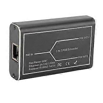 POE Extender 1 in 2 Out IEEE802.3AF/AT Aluminum Alloy POE Repeater Plug and Play for Security Camera