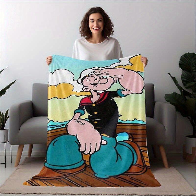 Popeye Flannel Throw Blanket - Large, Soft Polyester Knit Blanket with Cartoon Sailor Design, Ideal for Bed & Sofa, All--WSDCV239