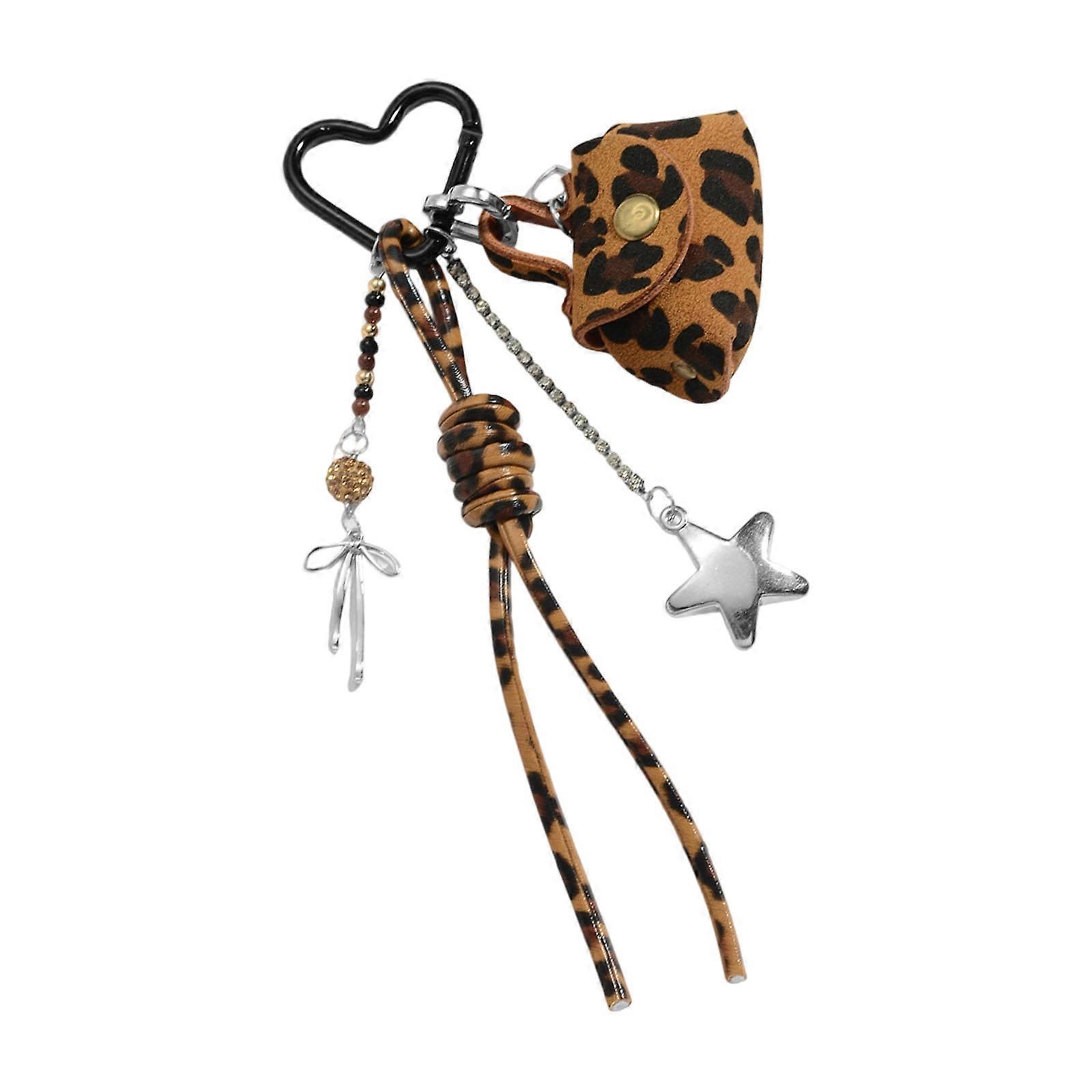 Portable Leopard Print Keychain Wallet With Decorative Metal Bowknot Charm Small Purse Keyring Accessory For Keys Multicolor