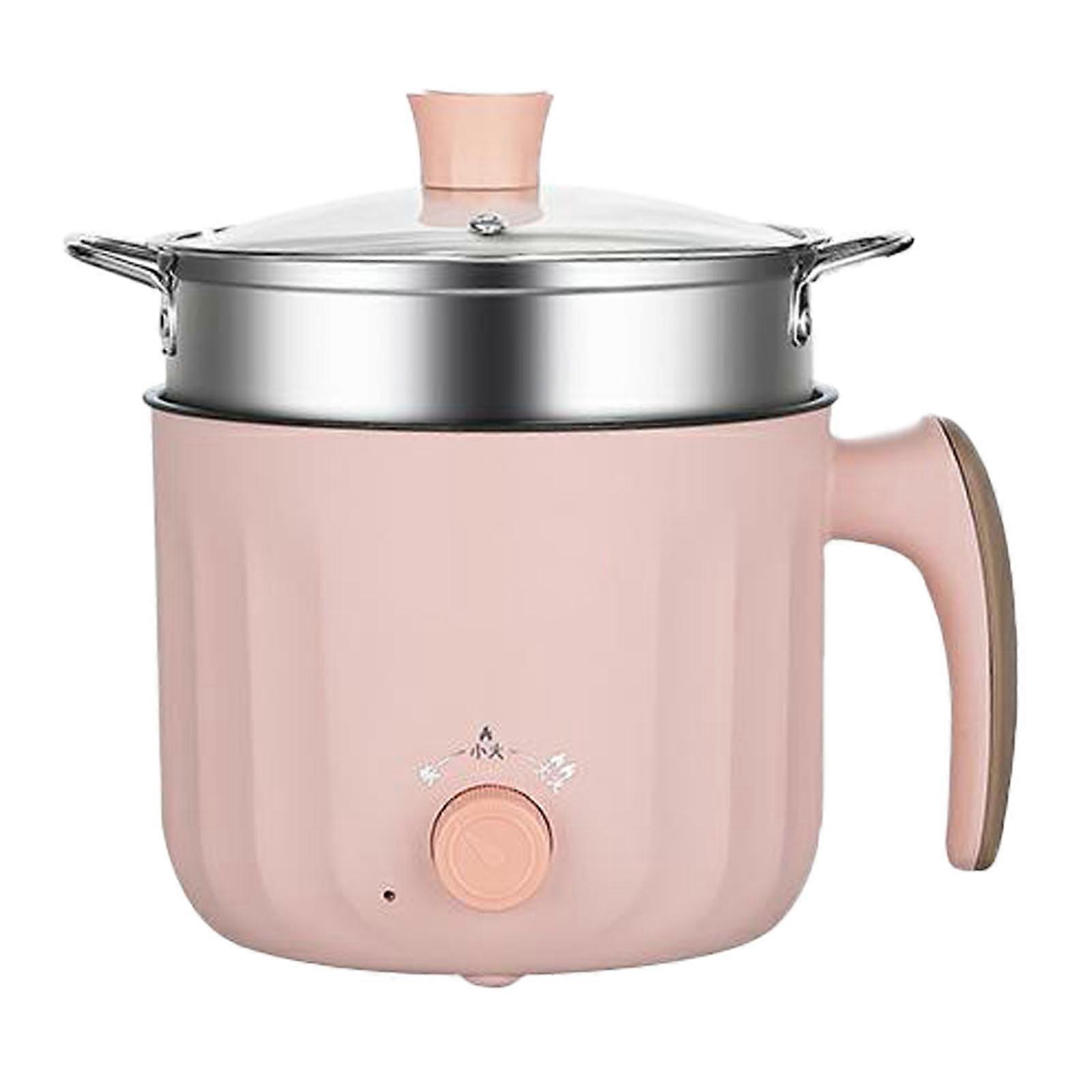Portable Pink Electric Hot Pot with Steaming Grid, Multi-Function
