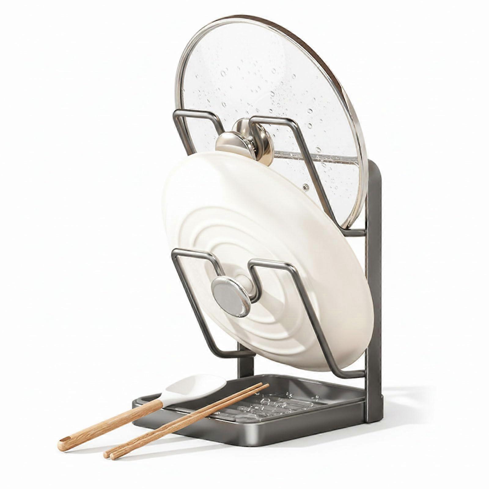Pot Lid Organizer with Removable Drip Tray, RustResistant Double Layer Kitchen Storage Rack Black