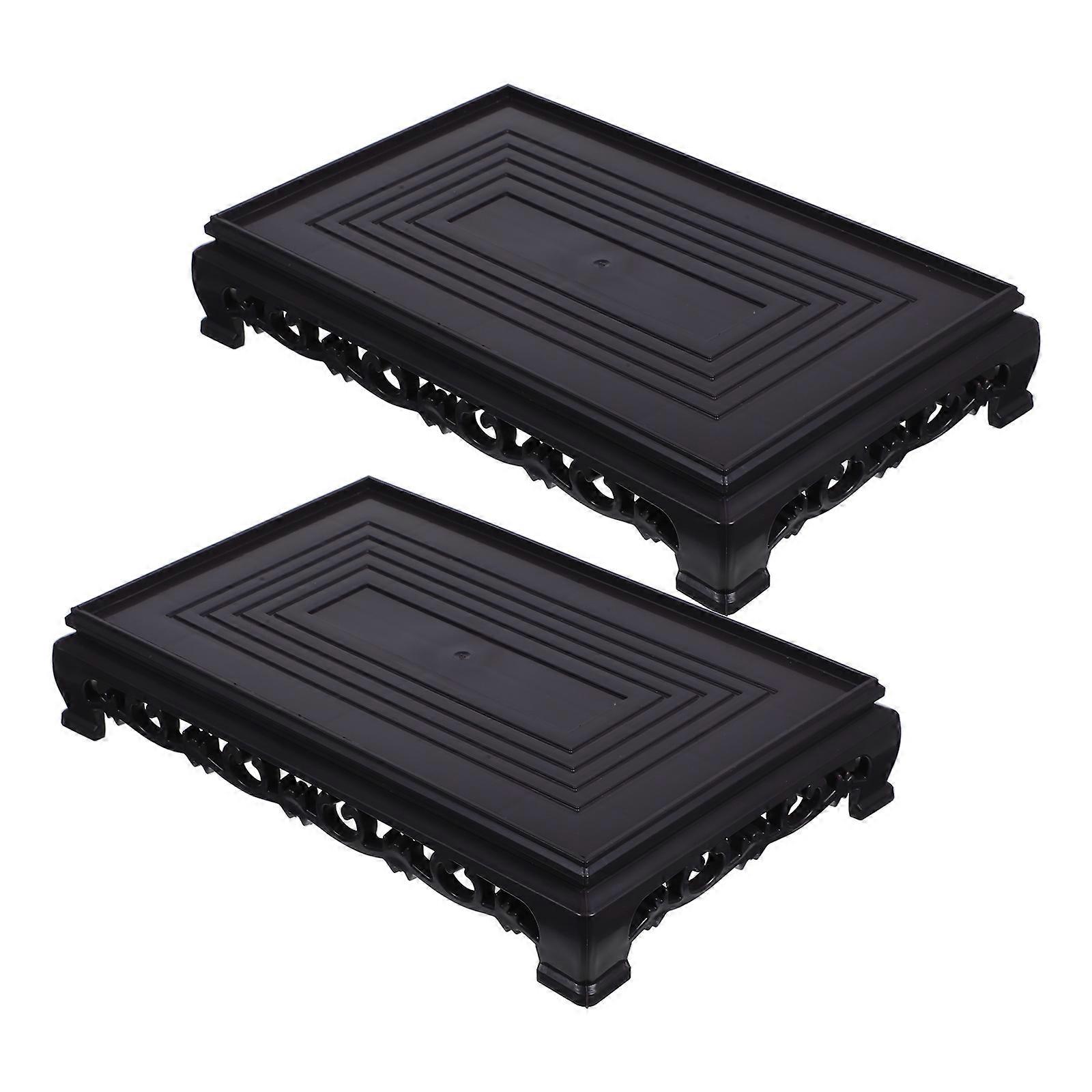 Potted Plant Display Shelf Rectangular Base for Storage Use 2Pcs Plastic Black