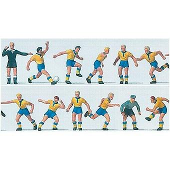 Preiser PR10755 Soccer Team (11) & Referee Yellow/Blue Exclusive Figure Set HO 1:87 (OO gauge compatible) Plastic Painted Figures [HO] Scale model