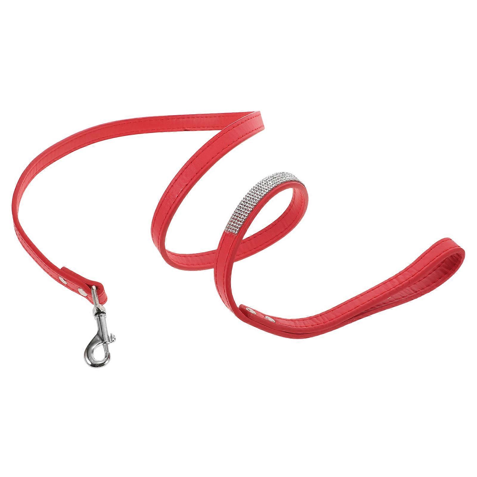 PU Leather Dog Leash Training Walking Pet Leash Products Colorful Walking Leashes with Sparkly Studded Rhinestone for Cats or Dogs (Red)