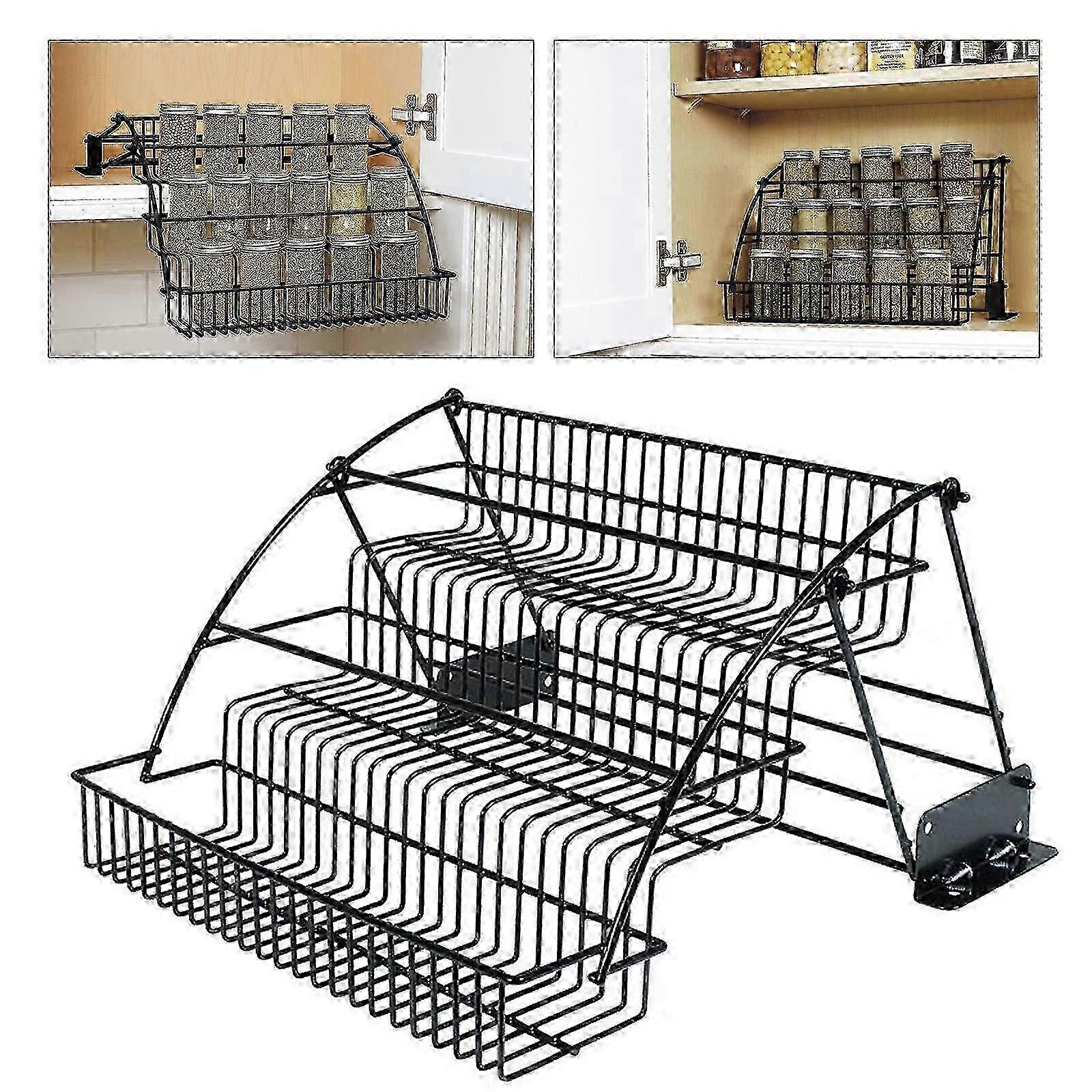 Pull Down Spice Rack for Upper Cabinets, 3Tier Black Wire Organizer with Screw Mount for Deep Inside Storage 2025