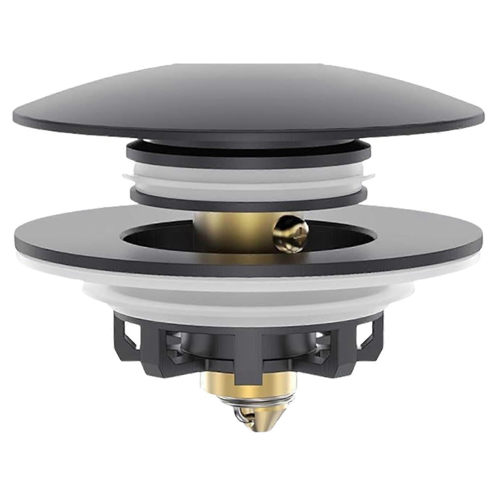 Push-Type Bathtub Stopper Brass Drain Plug, Rust-Resistant, Black Small Disc