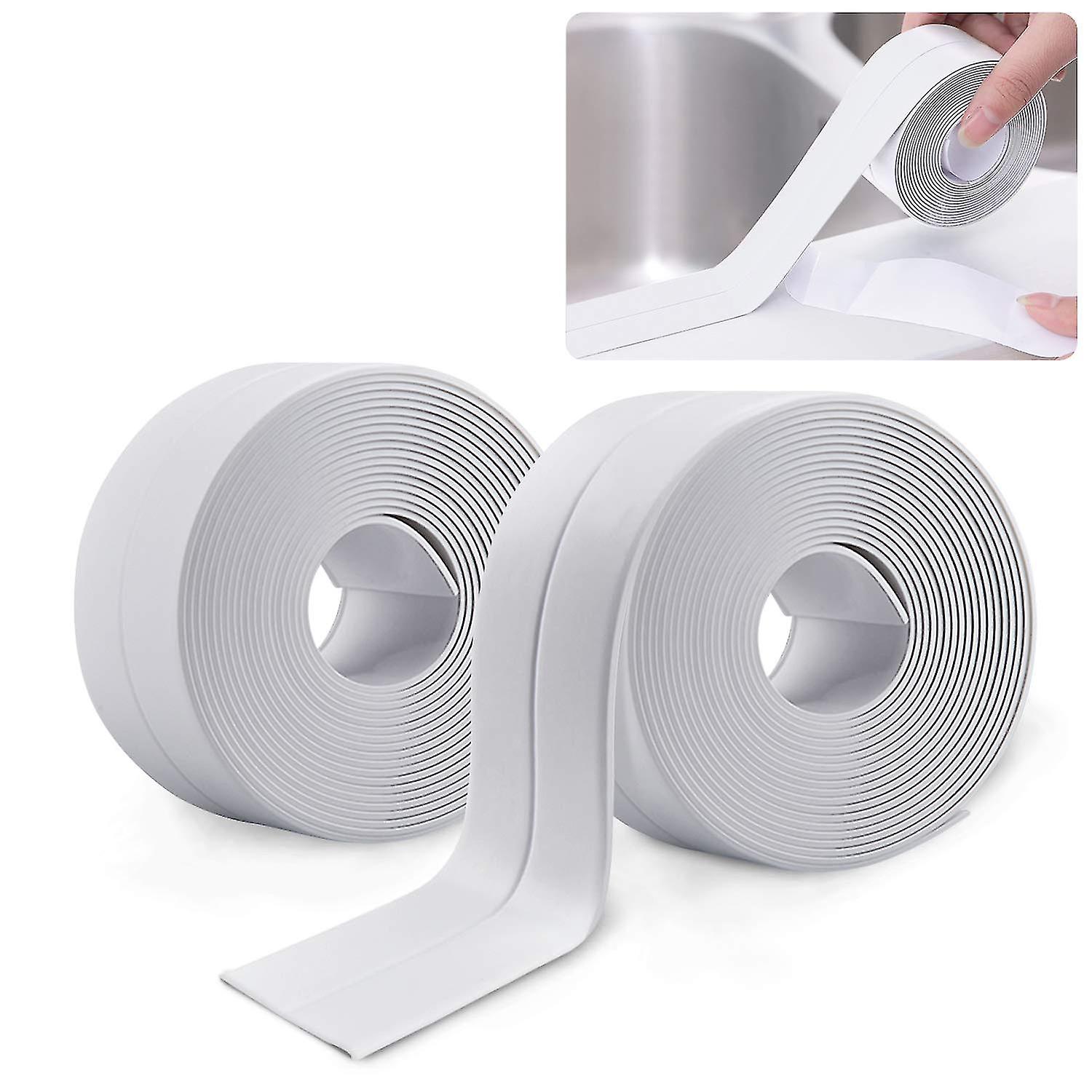 Pxcl 2 Rolls Waterproof Self Adhesive Sealing Tape, Pvc Self Adhesive Sealing Tape For Wall, Shower, Toilet, Kitchen, Bathroom (white)