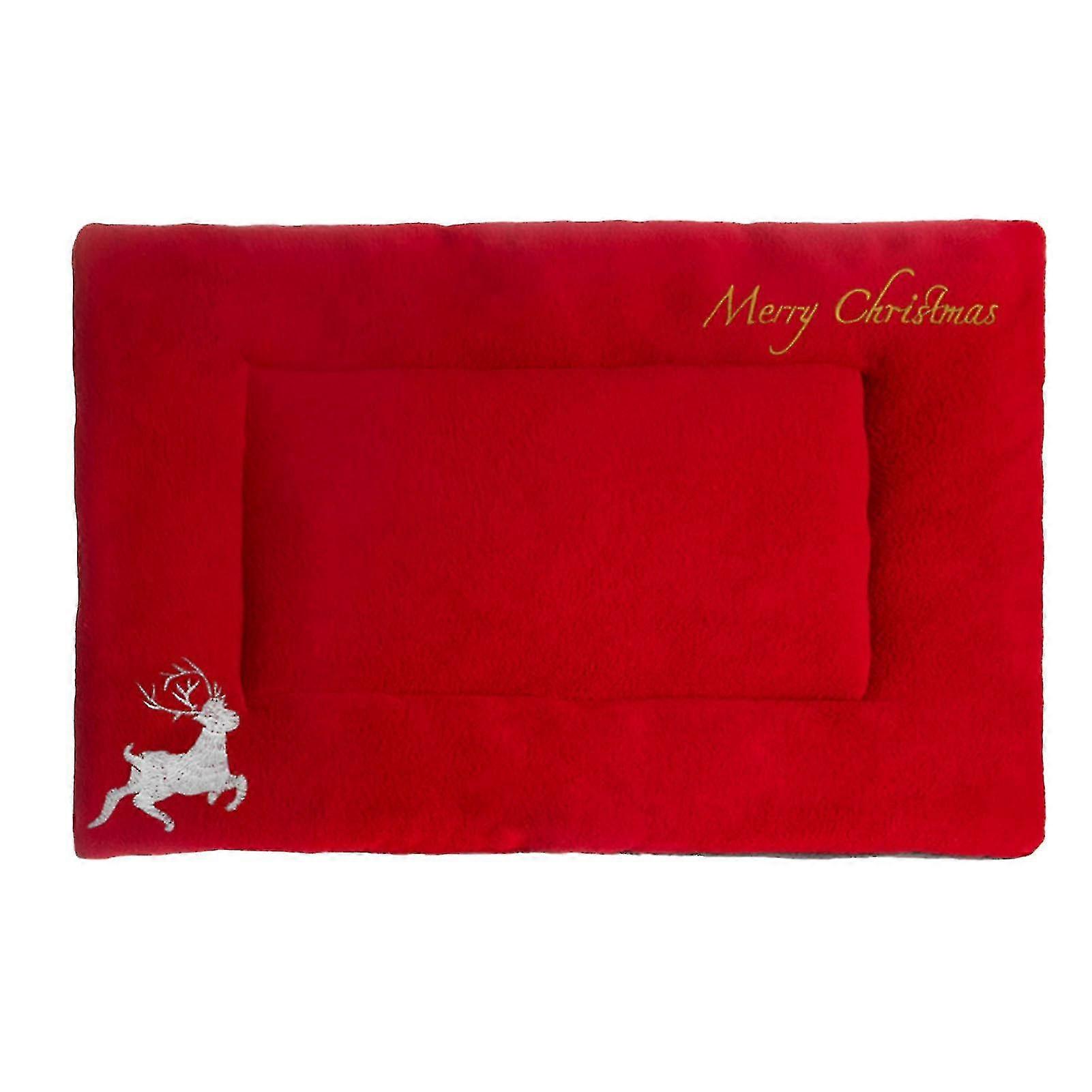Christmas Pet Cushion Elk Embroidery Pattern Skin Friendly Super Soft Rectangle Pet Sleeping Mat For Christmas Qinhai
