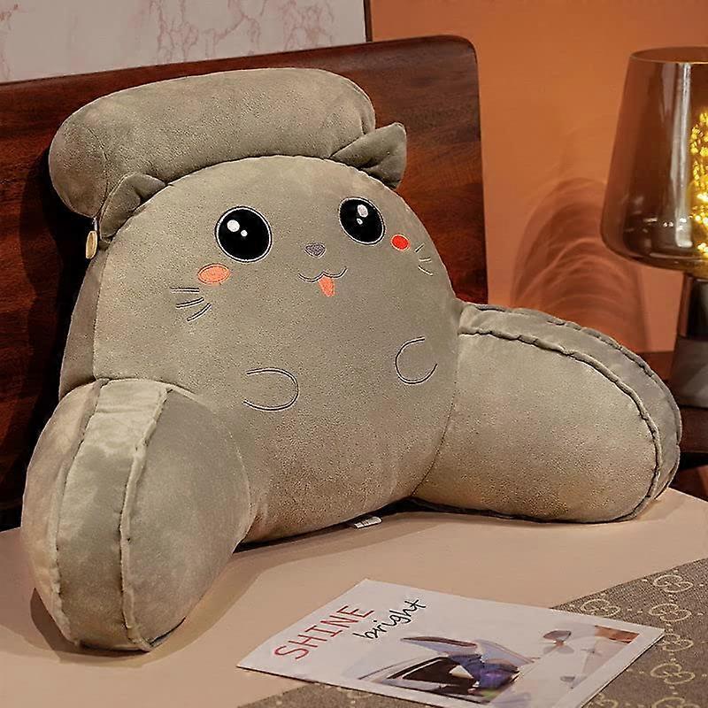 Reading Pillow with Back Support for Bed and Sofa, Ergonomic Wedge Cushion for Reading, Gaming, Relaxing, Gray Cat