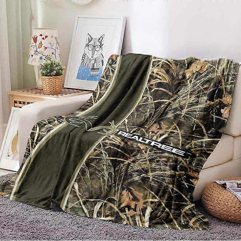Realtree Camouflage Pattern Polyester Fiber Blanket - All-Season Soft Flannel Throw with Realistic Camouflage Design, Gr-AZXCV254