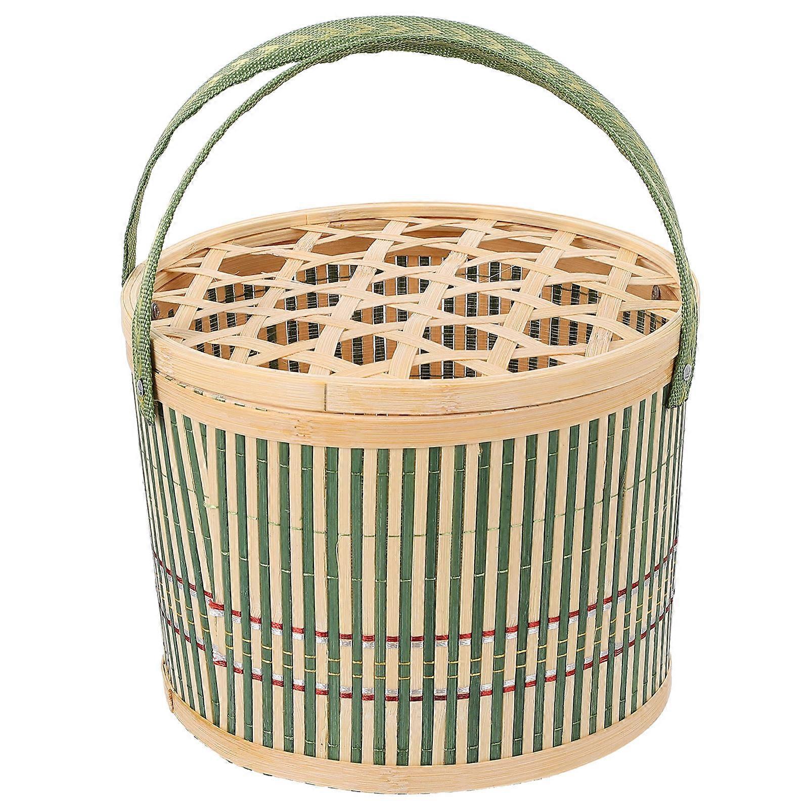 Rectangular Bamboo Basket Storage Container For Daily Use 21x21x16cm Green Color 1Pcs