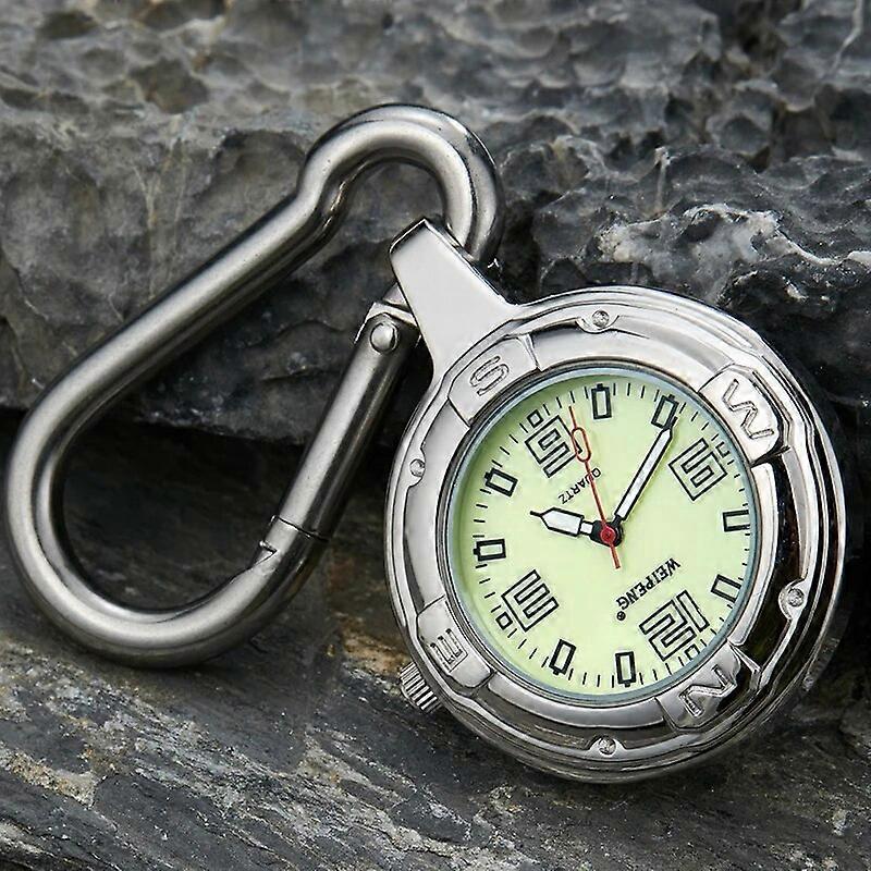 Fashion Silver Clip-On Carabiner Pocket Watch Unique Luminous Dial Quartz Watches Outdoor Sport Men Women Clock reloj de bolsill