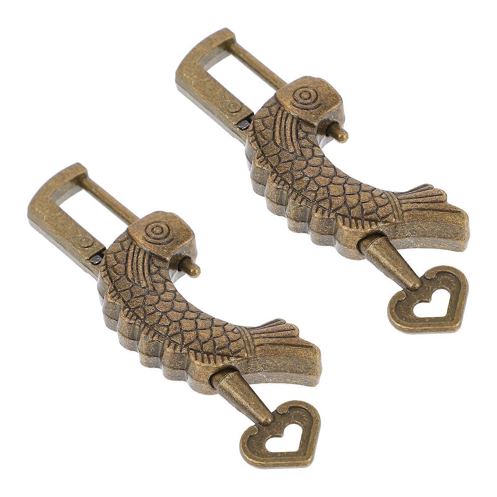 Retro Padlock Mini Lock With Keys For Securing Valuables Fish-Shaped Design 2Pcs