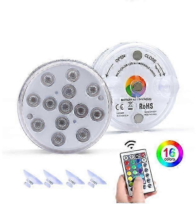 CONVENIENT REMOTE CONTROL- This submersible lights Battery Operated by 3 x AAA batteries (not included), 16 different static modes, 3 dynamic color changing modes. IR remote control, dimming or turn it ON/OFF. MULTI-COLOR- The small waterproof led lights can be adjusted to 16 kind of colors: red, green, blue, white, yellow, purple and other colors decorative lighting. JAZZ YOUR WATER UP - Reusable, 100% waterproof, perfect for lighting up vases, bowls, bath Led Light Toys or any water filled containers. This underwater light can turn a boring bowl into a beautiful and exciting centerpiece. MULTI-PURPOSE- It's perfect to be used at stage, disco, shopping malls, jewelry stores, showrooms, showcase, cabinet, museums, shops, it's also can be used as vase base, pond light, swimming pool light, aquariums light to add colours. Flower design and transparent cover, often used for party design. WATER-RESISTANT- The bottom that screws off has a rubber O-ring to prevent the water from going inside. So make sure to close it firmly. This water-resistant light bring you more fun. Package Included: 1*Waterproof Underwater Light