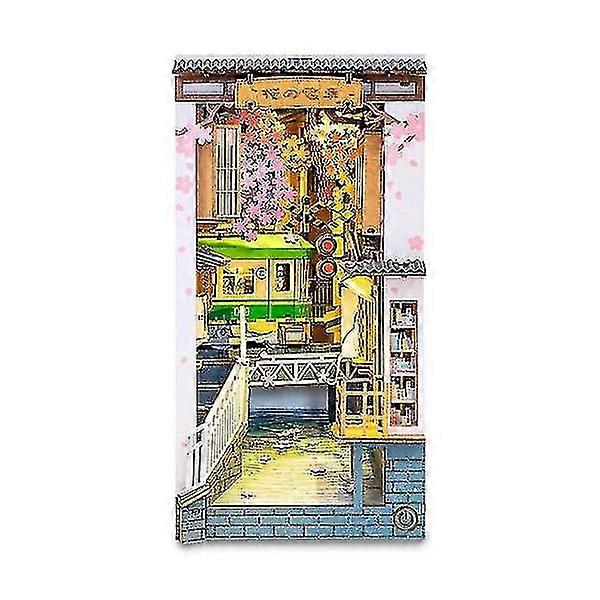 Robotime Rolife DIY Bookshelf Japanese Sakura Densya I Books-series Wooden Micro House with Furniture Dollhouse Kit Toy JB TGB01 sakura densya