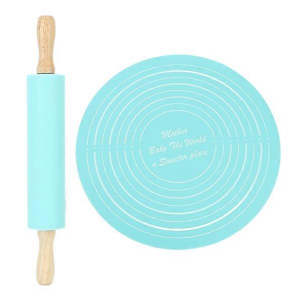 Rolling Pin and Silicone Baking Mat, Large Rolling Pin, Kneading Mat, Pastry Tools for Kitchen, Blue
