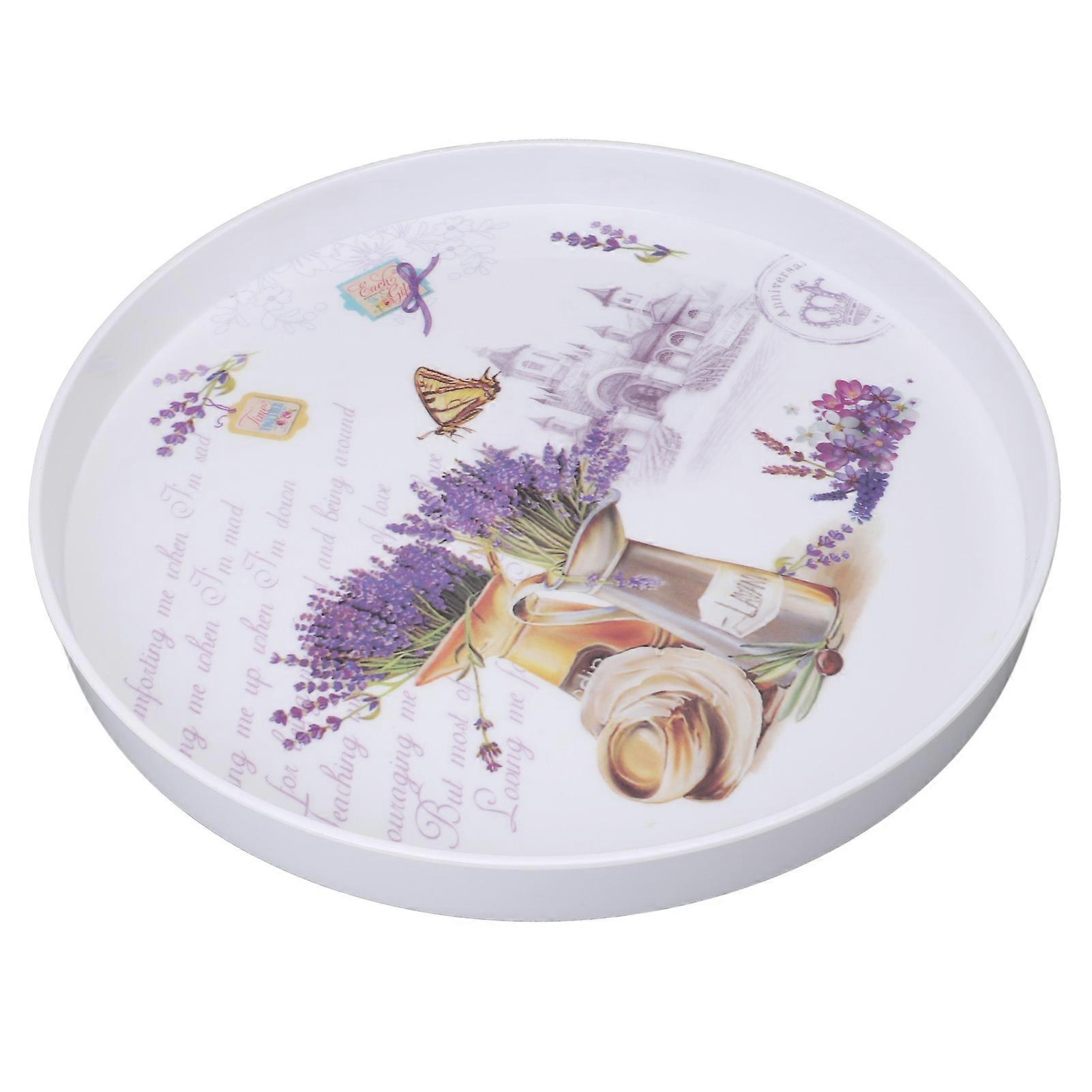 Round Plastic Food Tray 34cm Lavender Pattern Portable Serving Platter
