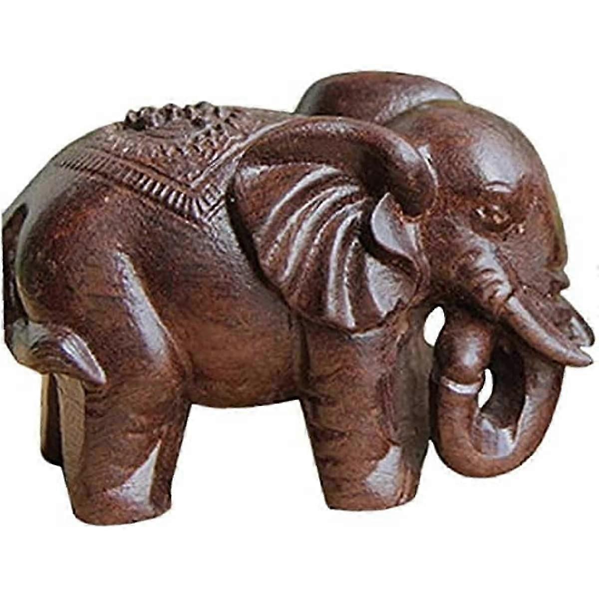 Ruluti Hand Carving Wood Carving Crafts Wooden Elephant Animal Ornaments Statue Desk Ornaments