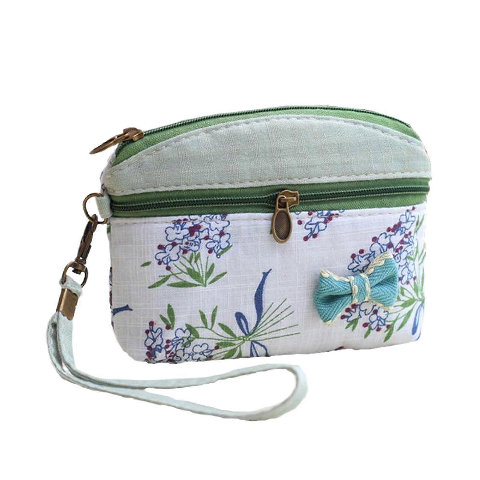 Rural Style Small Wallet, Durable Fabric Makeup Bag, Green Patterned Keychain Wallet, Compact Design