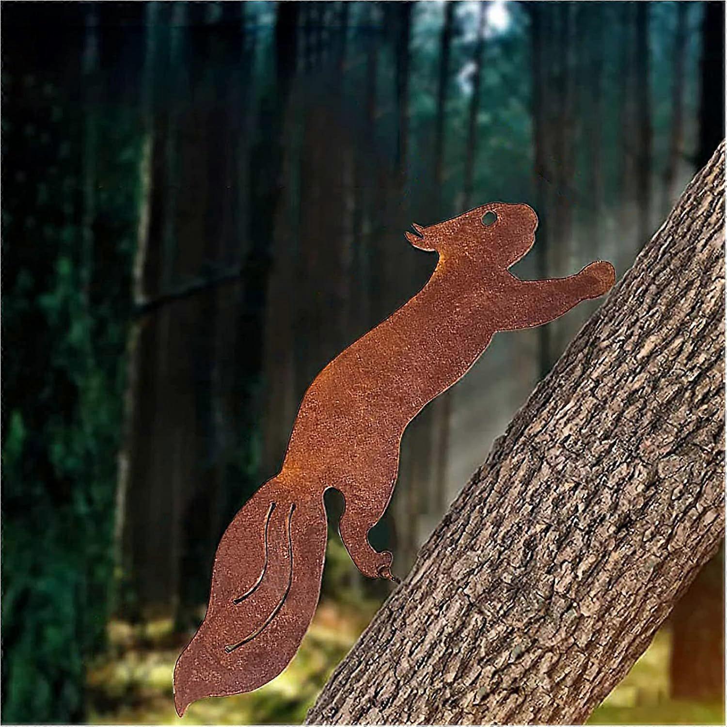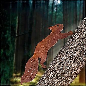 Rusty squirrel running, tree stake, rust decoration, height 9cm x length 30cm