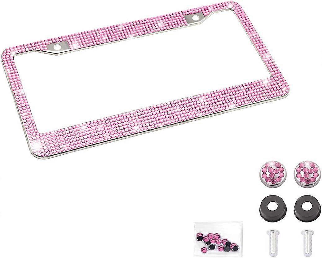 SBSGV Bling Car License Plate Frame, Handcrafted Crystal Stainless Steel, Sparkly, Durable, Universal Fit, Car Accessories for Girls, Women (Pink)