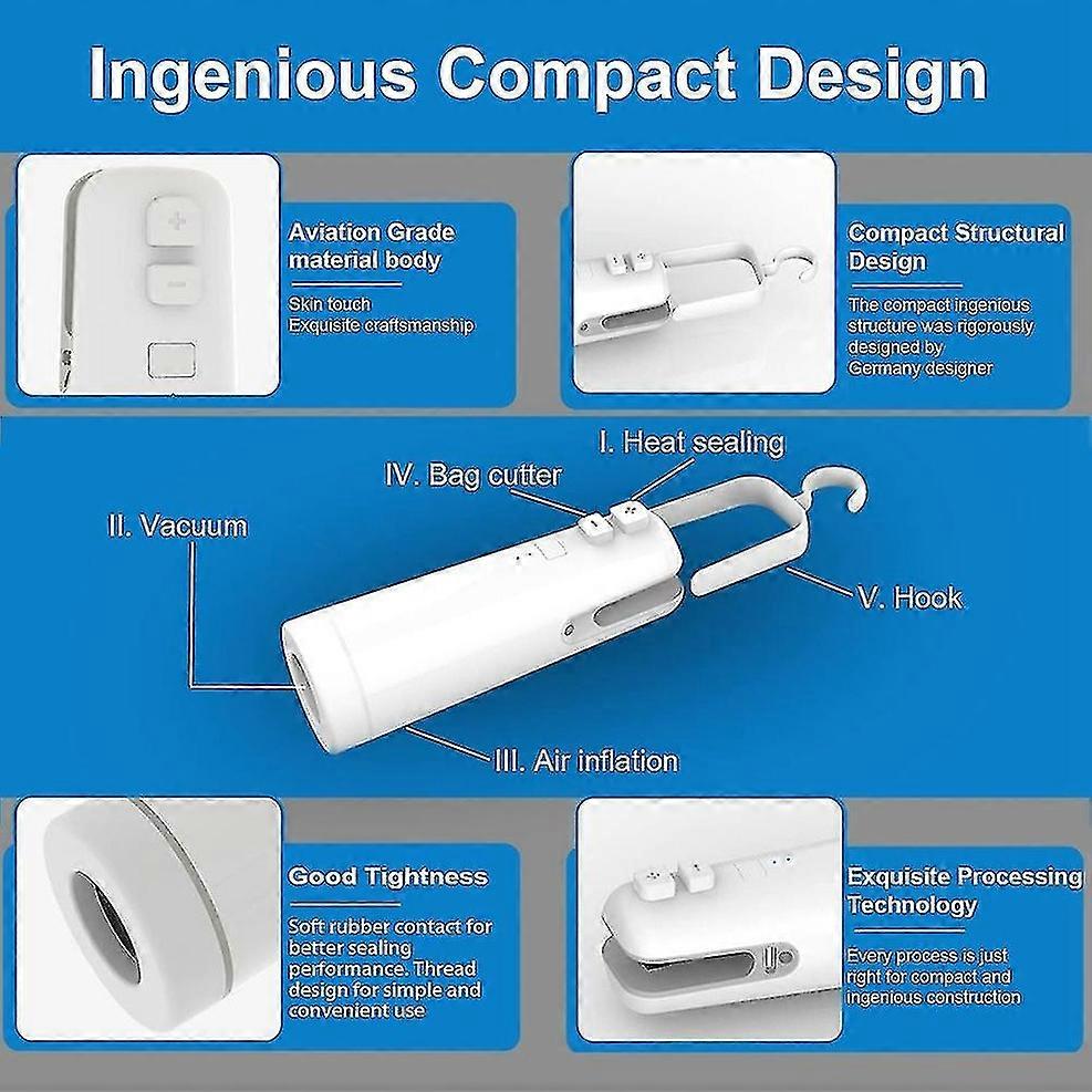 Sealer, 4 - in - 1 Multifunctional Device with Vacuum, Air Inflation, Bag Cutter and Hanging Hook, Indicator Light and Simple On/Off Operation