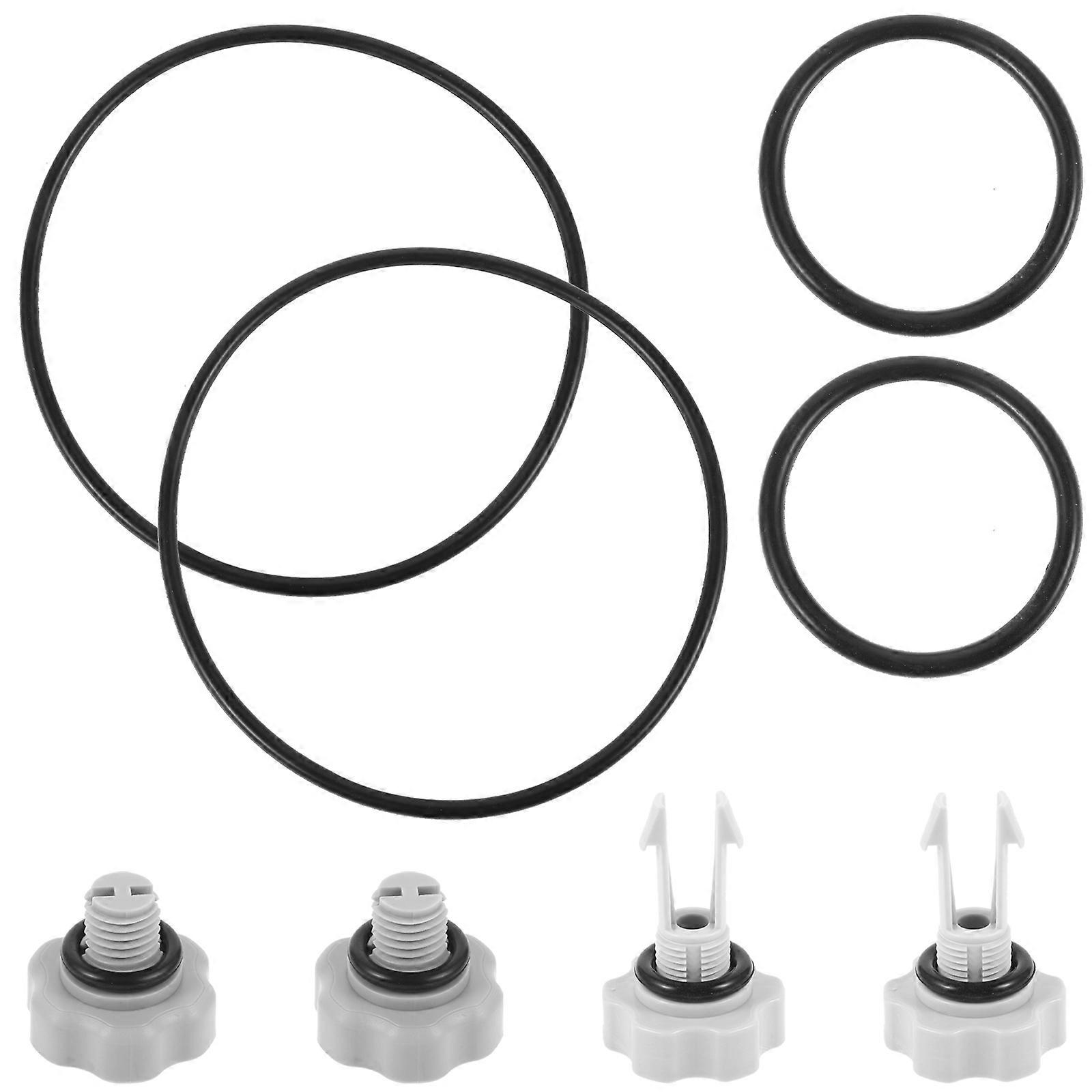 The Pool Pump Filter seal part is made of PVC materials, ensuring durability and excellent sealing performance, providing a perfect fit and easy installation. This O-ring effectively prevents water from entering the pump filter, protecting the pump's normal operation. With its carefully designed and tested construction, it offers a long lifespan, reducing the frequency of replacements. The sealing effect ensures reliable performance and prevents leaks, ensuring the pump operates efficiently. Features -Color:Multi -Material:PVC -Size(long plug):5.80X3.60X3.60cm/2.28X1.41X1.41in -Size(ring):15.70X15.70X0.50cm/6.17X6.17X0.20in - -ring for the pump filter cover of pool filter pump is made of PVC materials to ensure durability and sealing performance. - -ring is designed with a precise fit specifically for pool pump, ensuring a perfect fit. - -ring provides effective protection for the pump filter, keeping it safe from water damage and debris. -With its long lifespan, -ring reduces the frequency of replacements, saving time and money. -The reliable sealing of -ring prevents leaks and ensures efficient pump operation, maintaining optimal performance. Package list: 6 x small O-rings 6 O-rings 6 x Long plugs 6 x Short plugs