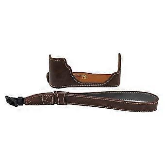 For Fujifilm X70 Camera Bottom Case with Hand Strap Battery Opening PU Leather Half Cover