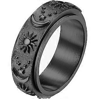 Titanium Stainless Fidget Ring 8mm Moon Star Sun Spinner Rings Silver Gold Black Stress Relieving Ana