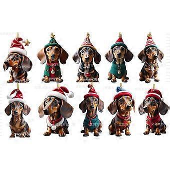 Mäyräkoiran joulukoristeet, riippuvat riipukset, monikoristeet, 8,00 x 5,60 x 0,30 cm, akryylinen käsityö, 10 kpl