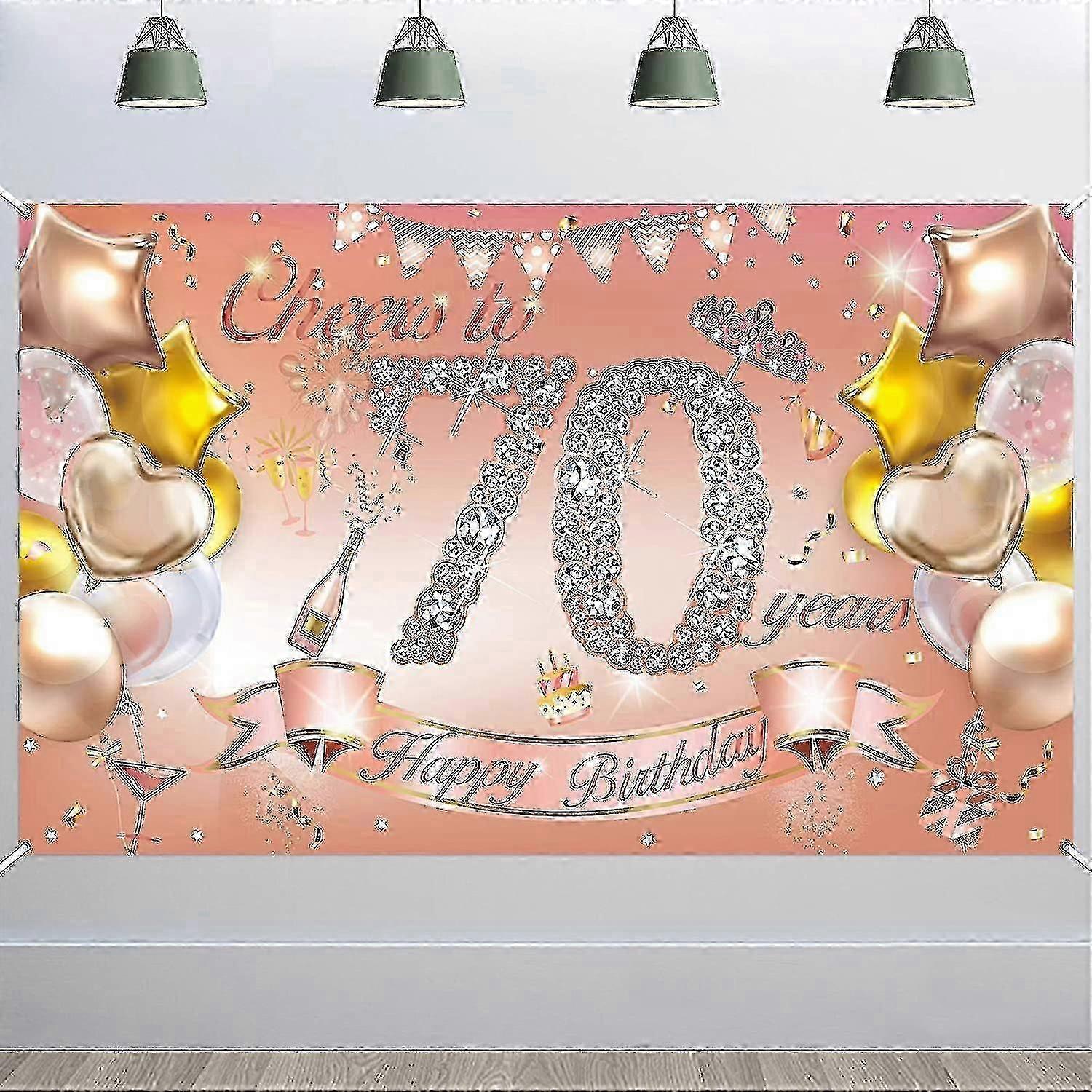 Shuaige Woman 70th Birthday Party Decoration Rose Gold, Fabric Banner For 70th Birthday Photo Backdrop Photography Background, 70th Birthday Outdoor G