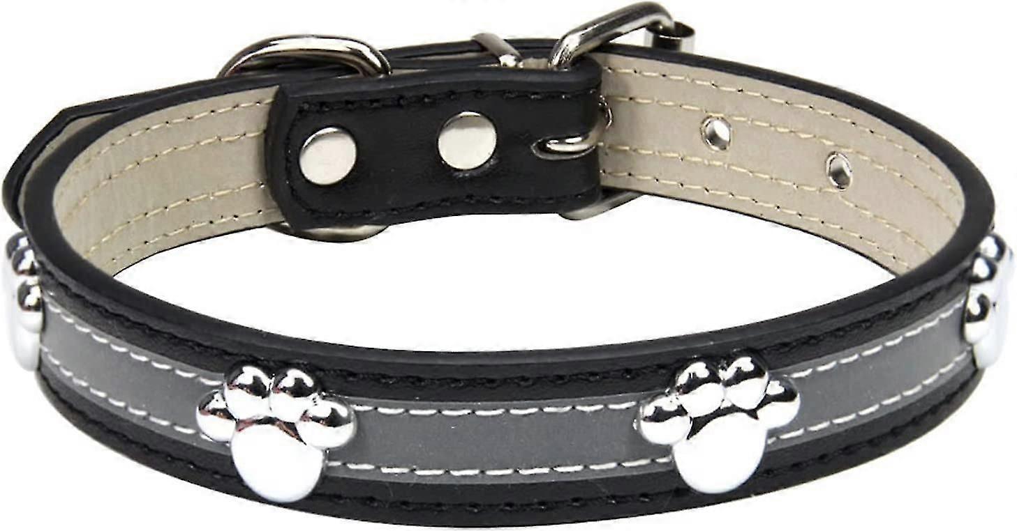 Shxx Reflective Dog Collar With Cute Paw Rivet Studded Funny Soft Pu Leather Adjustable Puppy Dog Collars For Small Medium Large Dogs Cats A106-905