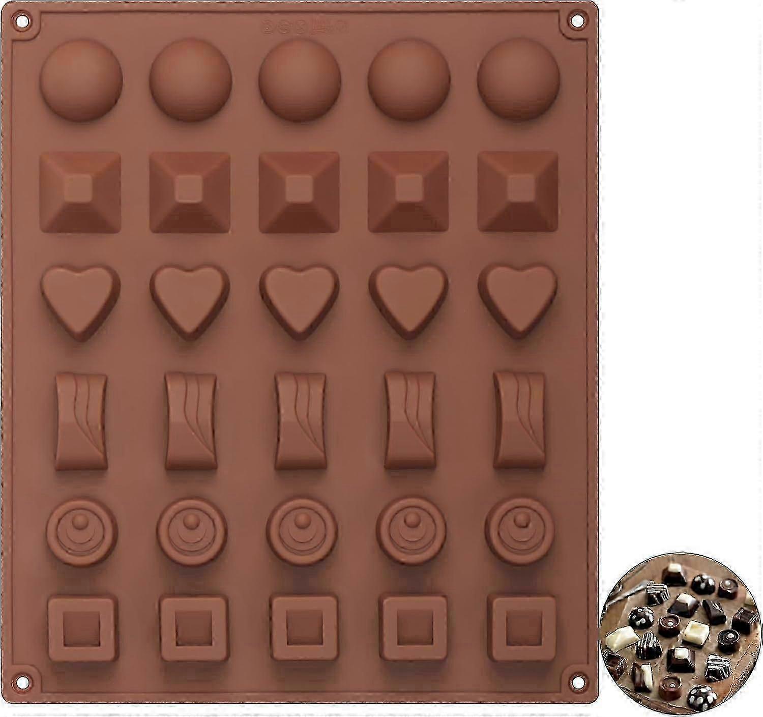 Silicone chocolate mold with 30 cavities and 6 unique shapes, perfect for creating chocolates and cake decorations, ideal for parties and ce
