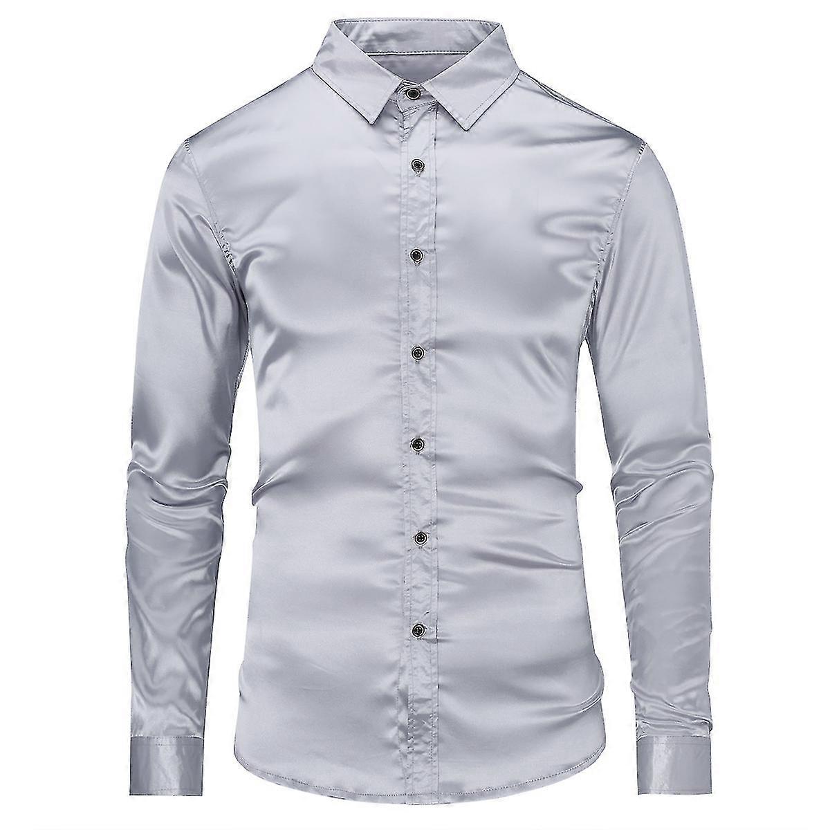 Silktaa Men's Casual Fashion Shiny Long-sleeved Slim-fit Formal Shirt