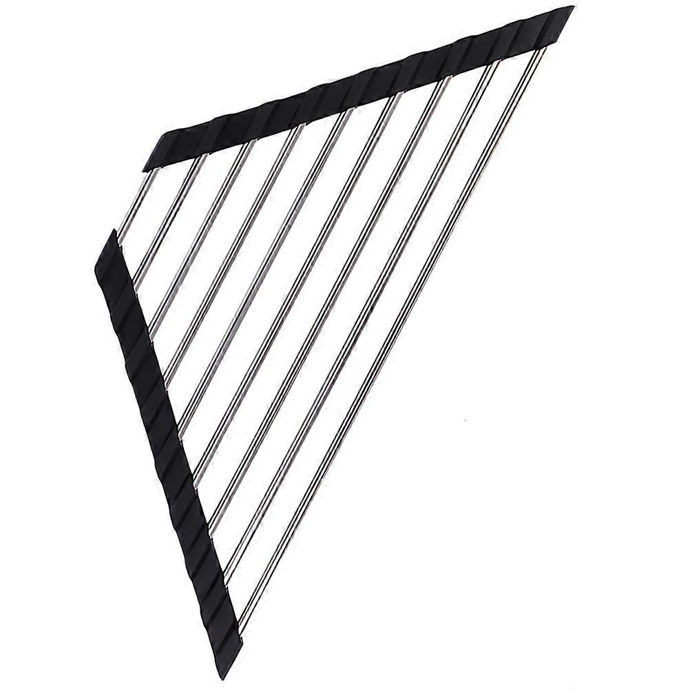 This is household draining rack, fine craft make it not easy to deform, portable for both indoor kitchen and outdoor camping use. The draining design allows water to drain, letting sponges and scrubbers dry. Features - ColorBlack - Material: , stainless steel - Size :41.00X16.50X0.70cm/16.11X6.48X0.28in - The material is safe and light, which is wear resistance and practical for the lasting time use. - Keep your sink area clean and tidy with this practical and functional kitchen sink sponge holder. - The triangular roll-up dish drying rack's stainless-steel tubes are not easy to fall out. - Safe and practical for food washing, draining and foldable design for better draining and more efficiently. - Smooth edges look, which allows you to use it as and convenient storage container. Package list: 4 x Dish Drying Rack