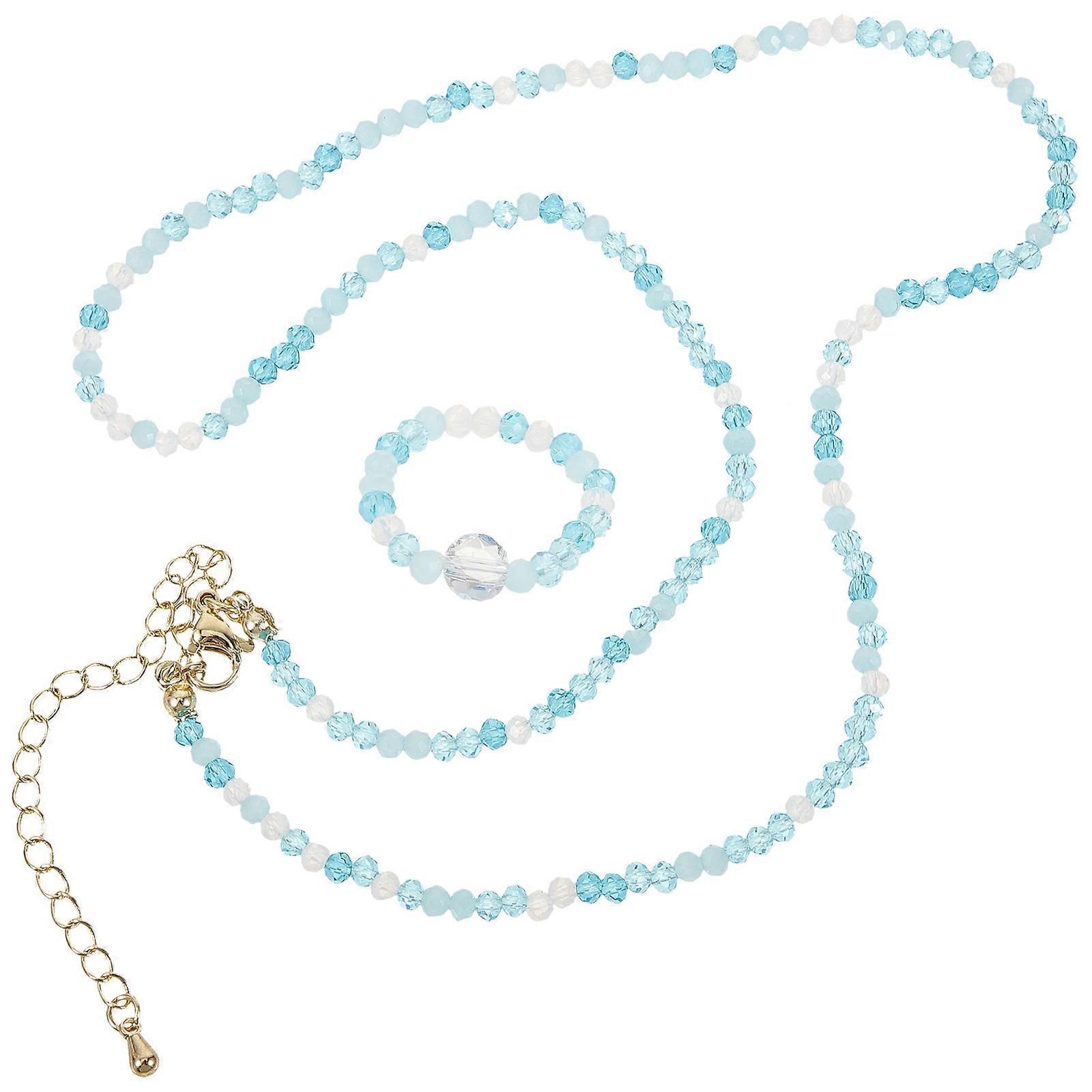 SkyBlue Crystal Bead Necklace and Ring Set for Decoration Lightweight Beaded Jewelry for Women