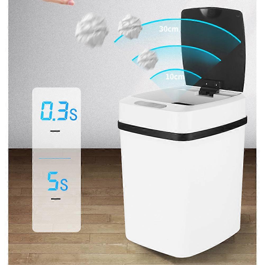This item is automatic inductive trash can, which is made of material. With large capacity, meet the requirement of the whole family. Intelligent inductive , the garbage can will open automatically. You also can open it by pressing the button or kicking it with your foot. Features - Color: White. - Material: PP, ABS. - Size: x 25 x 21.5 cm/12.99 x 9.84 x 8.46 inch. - Capacity: 12L. - Battery: 2 x AA batteries (Not included). - The dustbin will open automatically in 3 seconds when you get close to it. - Automatic to shut .It will shut 5 seconds after you leave. - Energy-saving and . It can work for a long time with 2pcs AA batteries. - Silence. It can operate silently and will not disturb your work or sleep. - Large capacity and meet the requirement of the whole family. Package list: 1 x Trash Bin